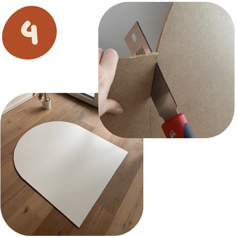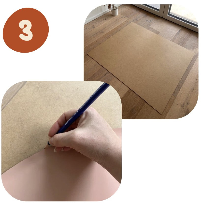 Læg MDF-pladen på gulvet med bagsiden opad. Placer Chalkboard ovenpå og tegn omridset af ChalkBoard, så det passer perfekt!